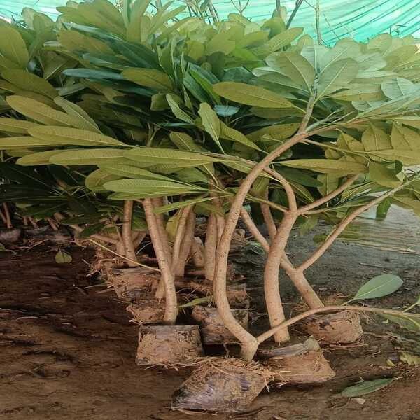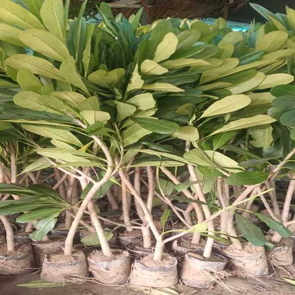 A Champa sapling (often Plumeria or Magnolia champaca) is a young tropical plant with thick stems, developing large, leathery leaves clustered at branch tips, and is known for its upcoming fragrant flowers (white, yellow, pink, red) that signify its beauty and easy cultivation, needing sun and good drainage as it grows into a small tree. Champa saplings are relatively hardy and adaptable, thriving in tropical/subtropical climates, needing ample sunlight and well-drained soil. Location : Uttar Pradesh, India
