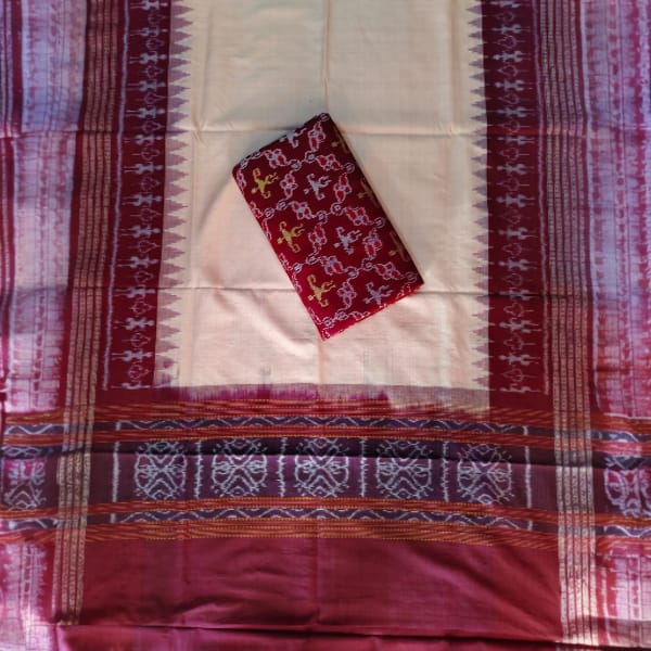 ![]() Description : Beautiful Lion Print Sambalpuri Saree. Handloom Sambalpuri Cotton Saree Is A Traditional Handwoven Textile From Odisha, India, With Intricate Tie-dyed Designs And Motifs. Handloom Sambalpuri Cotton Saree Is More Than Just A Fabric; It Reflects The Rich Culture And Heritage Of Odisha. Location : Odisha, India