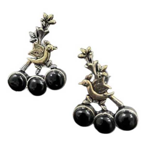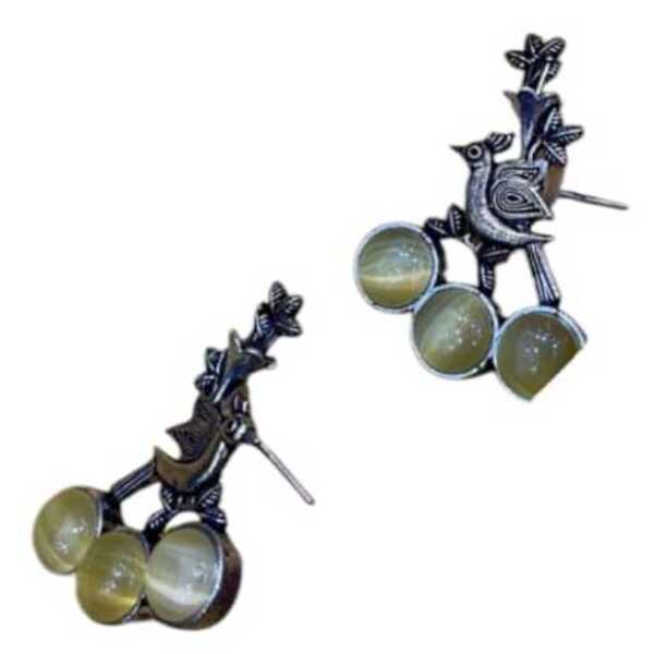 364 Pair Description : This Oxidized Silver Stone Bird Designed Earring Offers A Exceptional Aesthetics , Increased Durability , Versatility And Affordable And Environmentally Friendly. Location : Assam, India