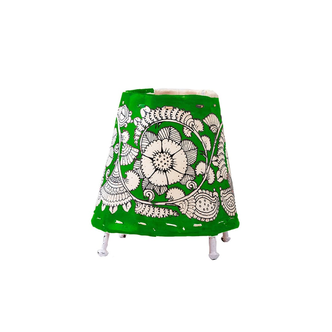 715 Piece Description : Tholu Bommalata Otherwise Known As Leather Puppet Dance / Leather Puppetry Is An Ancient Traditional Artform From Andra Pradesh. This Artform Is Diligently Crafted By Highly Skilled Artisans Who Have Mastered The Art Over A Long Period. These Lamps Are Made On Leather That Is Stretched Over Metal Frames. The Painting Is Hand Drawn With Natural Inks And Dyes. The Leather Is Also Perforated Along The Painting Which When Lit Creates A Beautiful Effect On The Wall. Location : Andhra Pradesh, India