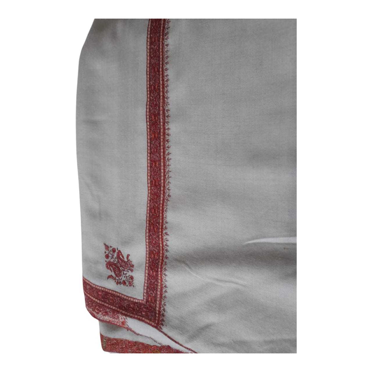 28600 Piece Description : This Sozni Zari Palla Embroidered Polywool Shawl Is Designed To Keep You Cozy And Stylish. The Elegant Seedpearl Shade Exudes Timeless Charm, Ensuring It Pairs Effortlessly With A Variety Of Western Wear And Traditional Wear. Location : Jammu & Kashmir, India