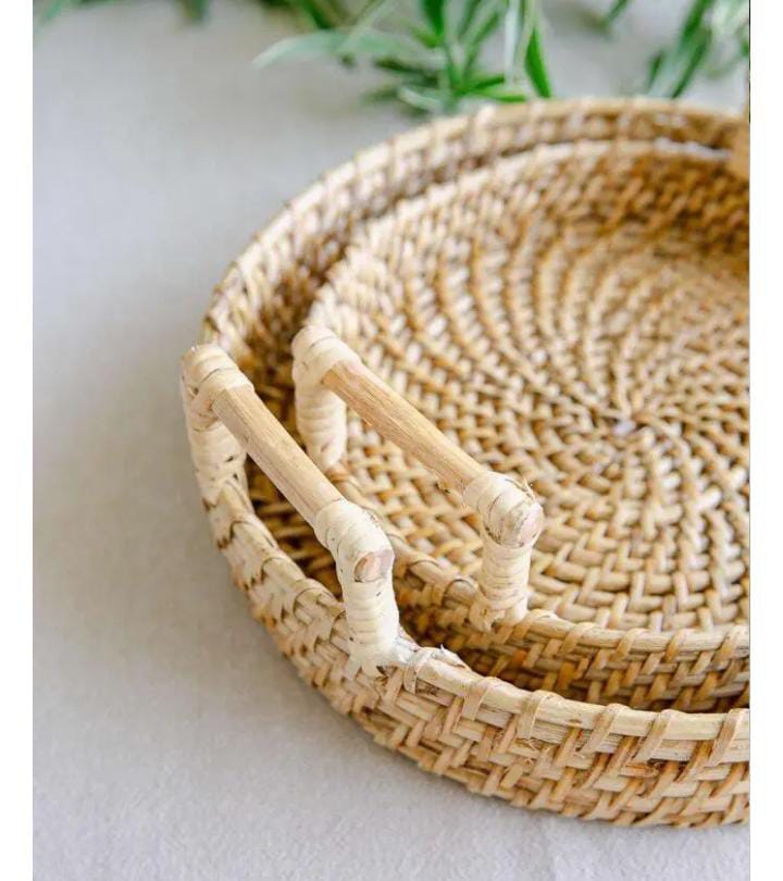1495 Piece Description : Cane Rattan Tray . Channel Heritage And Handwoven Tribal Story With These Cane Trays. Use It As A Serving Tray For Tea And Snacks Or As A Decor Accent Piece At The Center Of Your Dining Table. Equally Useful At The Entrance To Collect Keys And Get All. Great For Outdoor Balconies Or Patio Furniture. Ideal For Farmhouse Or Garden Settings, Rustic And Bohemian Style Brings Out The Best In Picnic And Outdoor Events. Cane Tray Weaves A Natural And Organic Story To Any Decor Setting. Location : Uttar Pradesh, India
