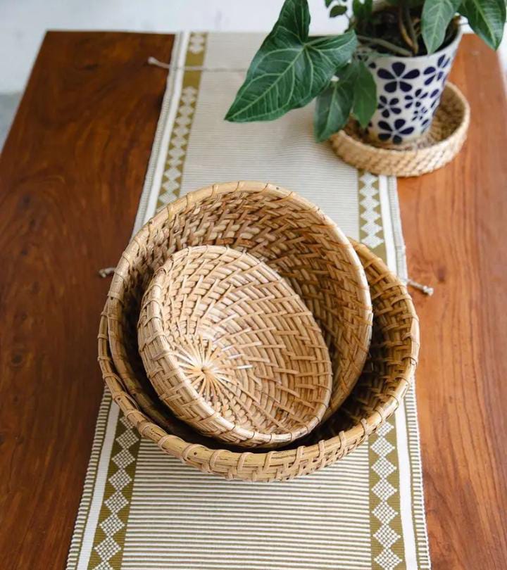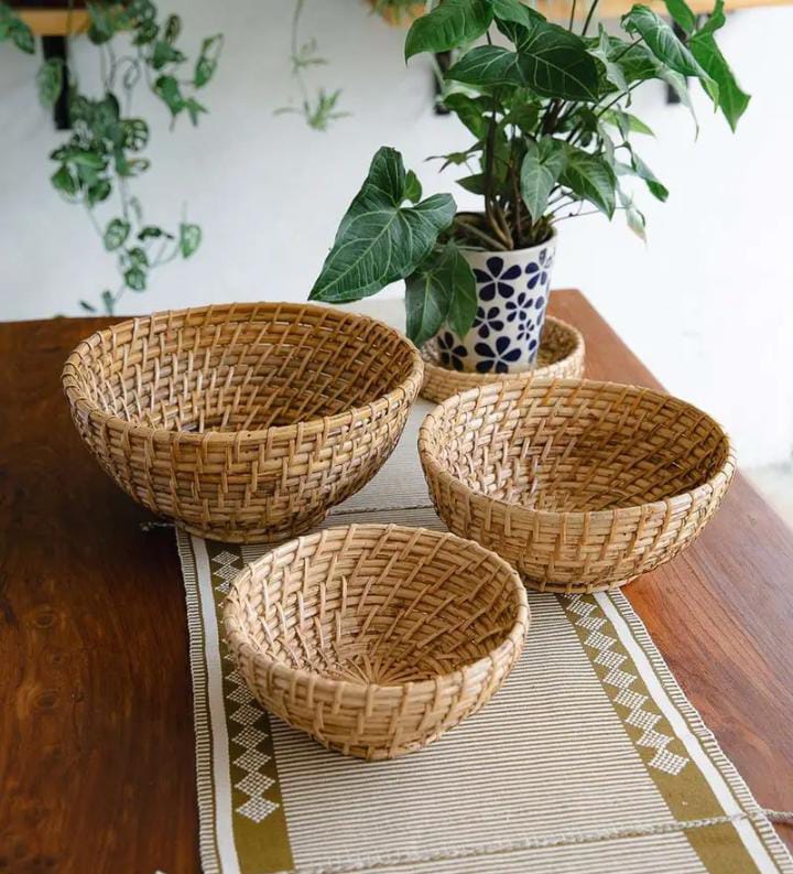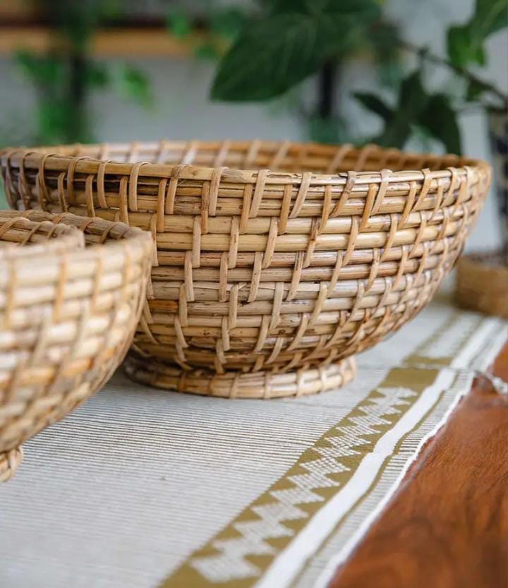2600 Piece Description : Rattan Cane Basket. Channel Heritage And Handwoven Tribal Story With These Cane Baskets. Use It As A Fruit Basket For Your Favorite Fruits Or As A Decor Accent Piece At The Center Of Your Dining Table. Equally Useful At The Entrance To Collect Keys And Get All. Great For Outdoor Balconies Or Patio Furniture. Ideal For Farmhouse Or Garden Settings, Rustic And Bohemian Style Brings Out The Best In Picnic And Outdoor Events. Cane Basket Weaves A Natural And Organic Story To Any Decor Setting. Location : Uttar Pradesh, India