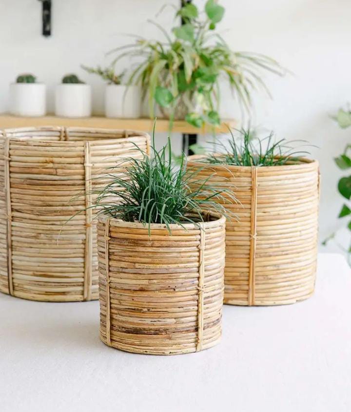 2600 Piece Description : Rattan Planter. Channel Heritage And Handwoven Style With These Rattan Cane Planters. Great For Indoors, Outdoors And Balcony. Pair Them With Your Living Room Decor Or Balcony Setting. Compliments Balcony And Patio Furniture. Ideal For Farmhouse Or Garden Settings, Rustic And Bohemian Style Brings Out The Best In Outdoor Events. Create A Decor Theme For Your Parties And Other Outdoor Events With These Handmade Planters From Tukura Home. Location : Uttar Pradesh, India