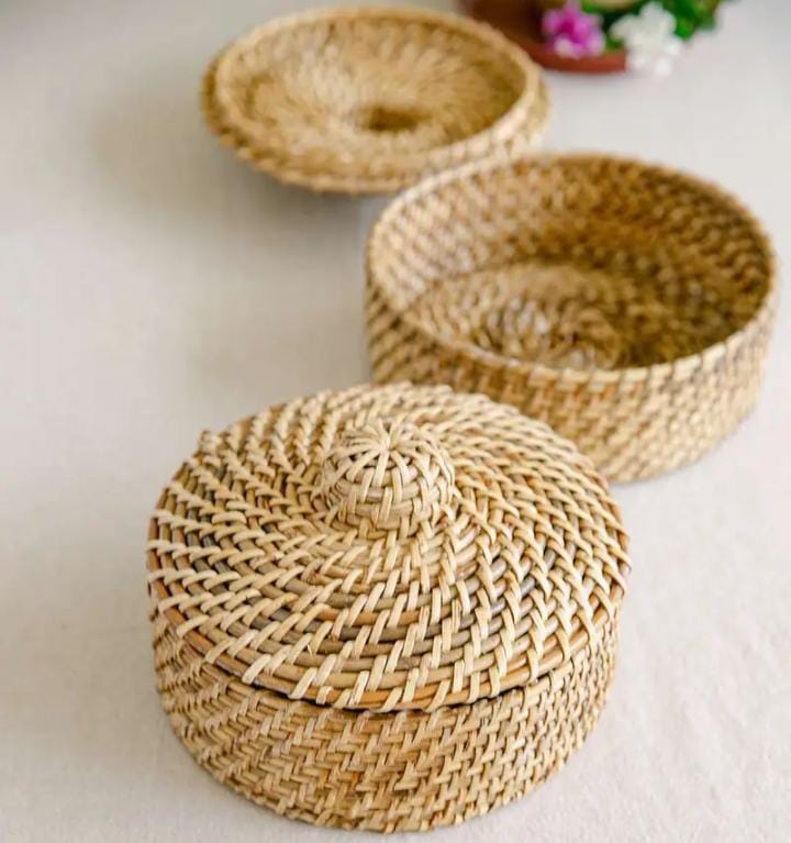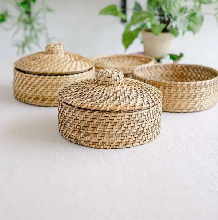 1884 Piece Description : Rattan Box With Lid. Channel Heritage And Handcrafted Natural Decor Story With These Cane Box. Use It As A Decor Box, Jewellery Box Or As A Decor Accent Piece At The Center Of Your Dining Table. Equally Useful At The Entrance To Collect Keys And Get All. Bring Natural Charm To Your Office Table. Great For Outdoor Balconies Or Patio Furniture. Ideal For Farmhouse Or Garden Settings, Rustic And Bohemian Style Brings Out The Best In Picnic And Outdoor Events. Location : Uttar Pradesh, India