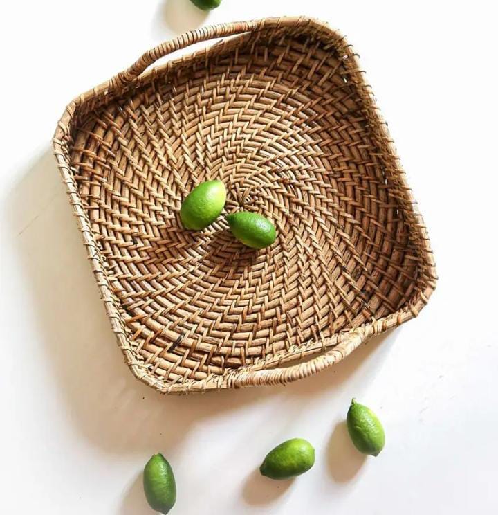 2590 No. Description : Rattan Cane Square Tray. Channel Heritage And Handwoven Tribal Story With These Cane Trays. Use It As A Serving Tray For Tea And Snacks Or As A Decor Accent Piece At The Center Of Your Dining Table. Equally Useful At The Entrance To Collect Keys And Get All. Great For Outdoor Balconies Or Patio Furniture. Ideal For Farmhouse Or Garden Settings, Rustic And Bohemian Style Brings Out The Best In Picnic And Outdoor Events. Location : Uttar Pradesh, India
