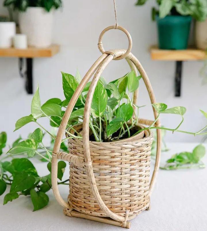 1884 Piece Description : Cane Hanging Planter Woven. Channel Heritage And Handwoven Style With These Cane Hanging Planters. Great For Indoors, Outdoors And Balcony. Hang Them Long Or Short Depending On Your Space. Compliments Balcony And Patio Furniture. Ideal For Farmhouse Or Garden Settings, Rustic And Bohemian Style Brings Out The Best In Outdoor Events. Create A Decor Theme For Your Parties And Other Outdoor Events With These Handmade Planters From Tukura Home. Location : Uttar Pradesh, India