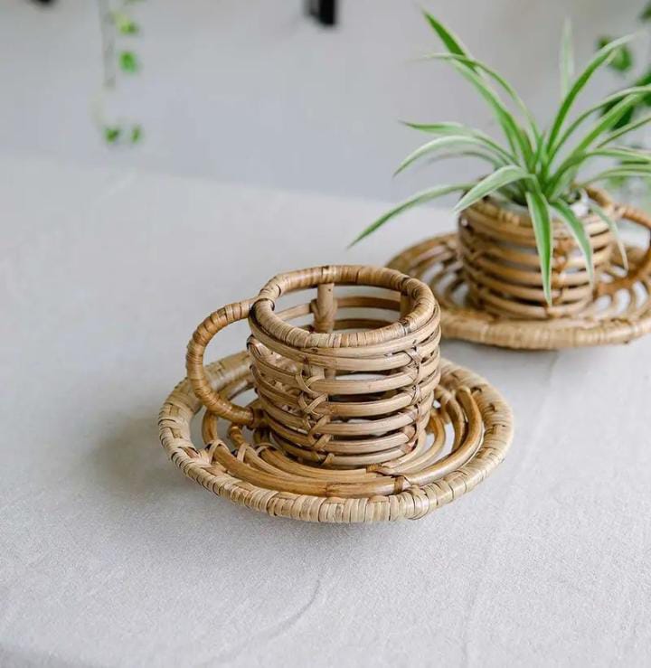 Home > Handicraft > Cane Products > Rattan Planter Cup And Saucer Flower Pot