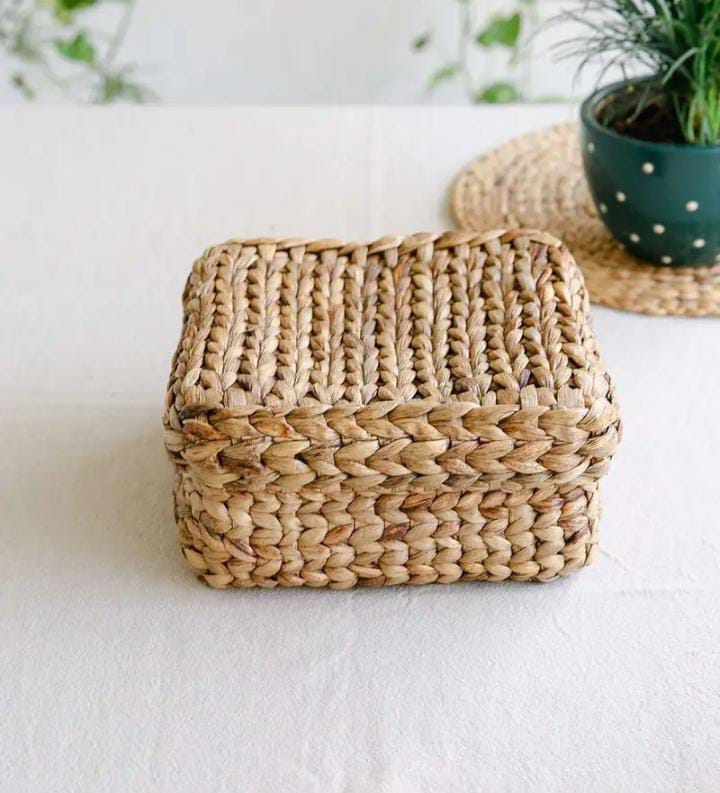 779 Piece Description : Grass Basket With Lid. Channel Heritage And Handwoven Natural Decor Accent With These Grass Baskets. Use It As A Accent Piece Or As A Bath & Body Organizer . Equally Useful At The Entrance To Collect Keys And Get All. Great For Outdoor Balconies Or Patio Furniture. Ideal For Farmhouse Or Garden Settings, Rustic And Bohemian Style Brings Out The Best In Picnic And Outdoor Events. Ideal As A Declutter For Table Or As An Accent Piece. Dazzle Your Decor With These Natural And Earthy Baskets. Location : Uttar Pradesh, India