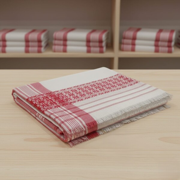 The Gamosa is a multipurpose cloth that can be used as a towel, handkerchief, head covering, waistband, or even as a gift wrapper. It is an important part of Assamese culture and is used in various social, cultural, and religious ceremonies. The Gamosa is also a symbol of hospitality, friendship, and respect. Location : Assam, India