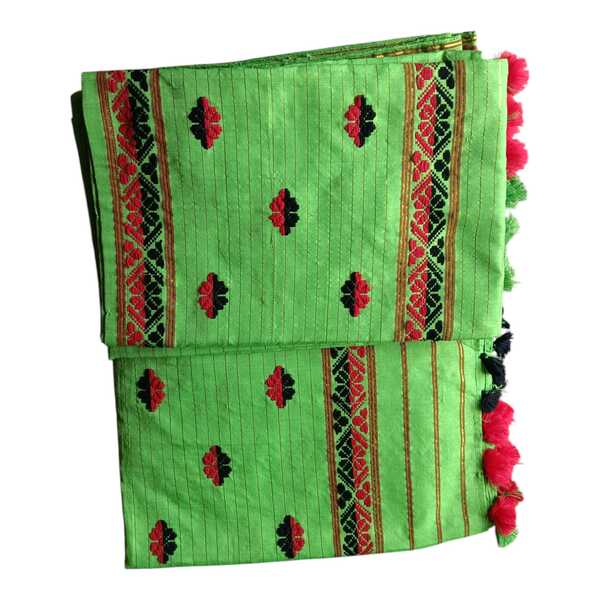 ![]() Description : Chanderi Sarees Are Known For Their Fine Quality, Sheer Texture, And Intricate Artistry. They Are Woven From A Blend Of Silk And Cotton, And Feature Intricate Zari Work. Location : Madhya Pradesh, India