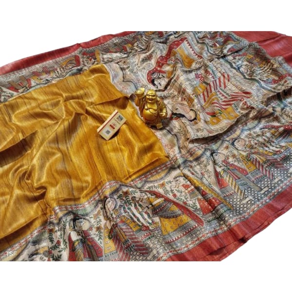 7149 Piece Description : Madhubani Sarees Are Rich Art Of India, Each Madhubani Saree Is A Piece If Elegant Art. Mythological Pattern, Motifs Like The Sun, Trees, Flowers, Fishes, Bamboos And Many Other Motifs Enhances The Sarees Beauty. From Border Painted Saree To Fully Painted One, Each Madhubani Saree Speaks A Story. Location : Bihar, India