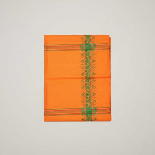 780 Piece Description : The Tiwa Gamosa, A Rectangular, Handwoven Cotton Cloth, Is A Significant Cultural Symbol In Assam, Often Presented As A Gift Or Used In Ceremonies, And Known For Its Vibrant Orange Color And Green Motifs. Location : Assam, India