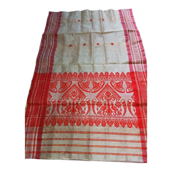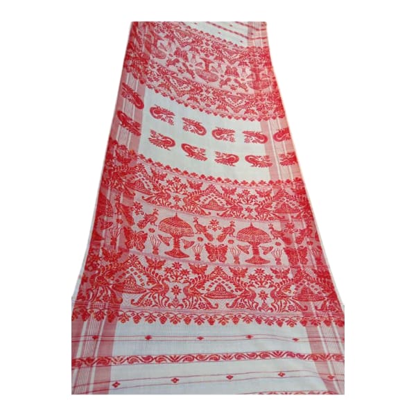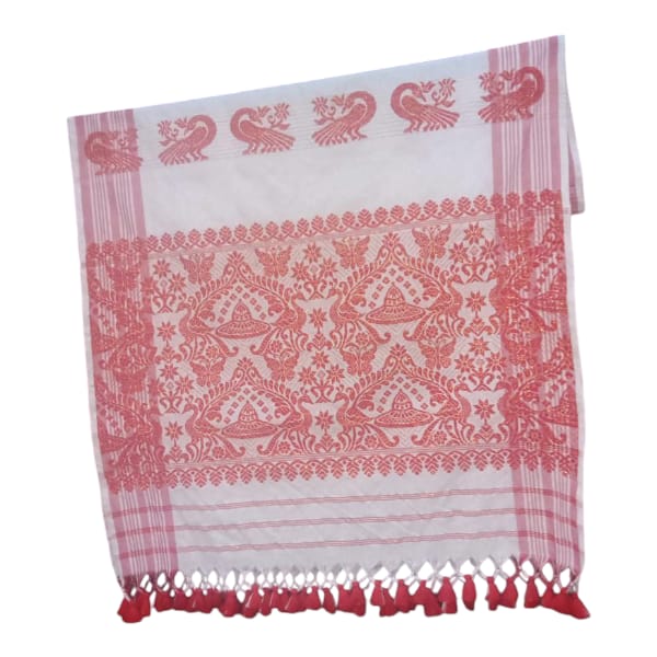 ![]() Description : The Rabha Gamosa, A Traditional Assamese Handwoven Cloth, Is A Rectangular Piece Of Fabric, Often White With Red Borders On Three Sides And Woven Motifs On The Fourth, Used As A Symbol Of Respect, Gratitude, And Affection, And Is A Multipurpose Item Used For Various Purposes. Material: Primarily Made From Cotton Yarn, Though Special Occasion Gamosas Can Be Made From Pat Silk. Design: Typically White With Red Borders On Three Sides And Woven Motifs On The Fourth Side. Significance: Symbol Of Respect And Gratitude: Gamosas Are Used To Express Respect, Gratitude, And Affection, And Are Often Gifted To Guests Or Used To Honor Distinguished Individuals. Multipurpose: They Can Be Used As A Towel, Handkerchief, Head Covering, Waistband, Or Even As A Gift Wrapper. Cultural Significance: The Gamosa Holds A Significant Place In Assamese Culture And Forms An Integral Part Of Various Social, Cultural, And Religious Ceremonies. Location : Assam, India