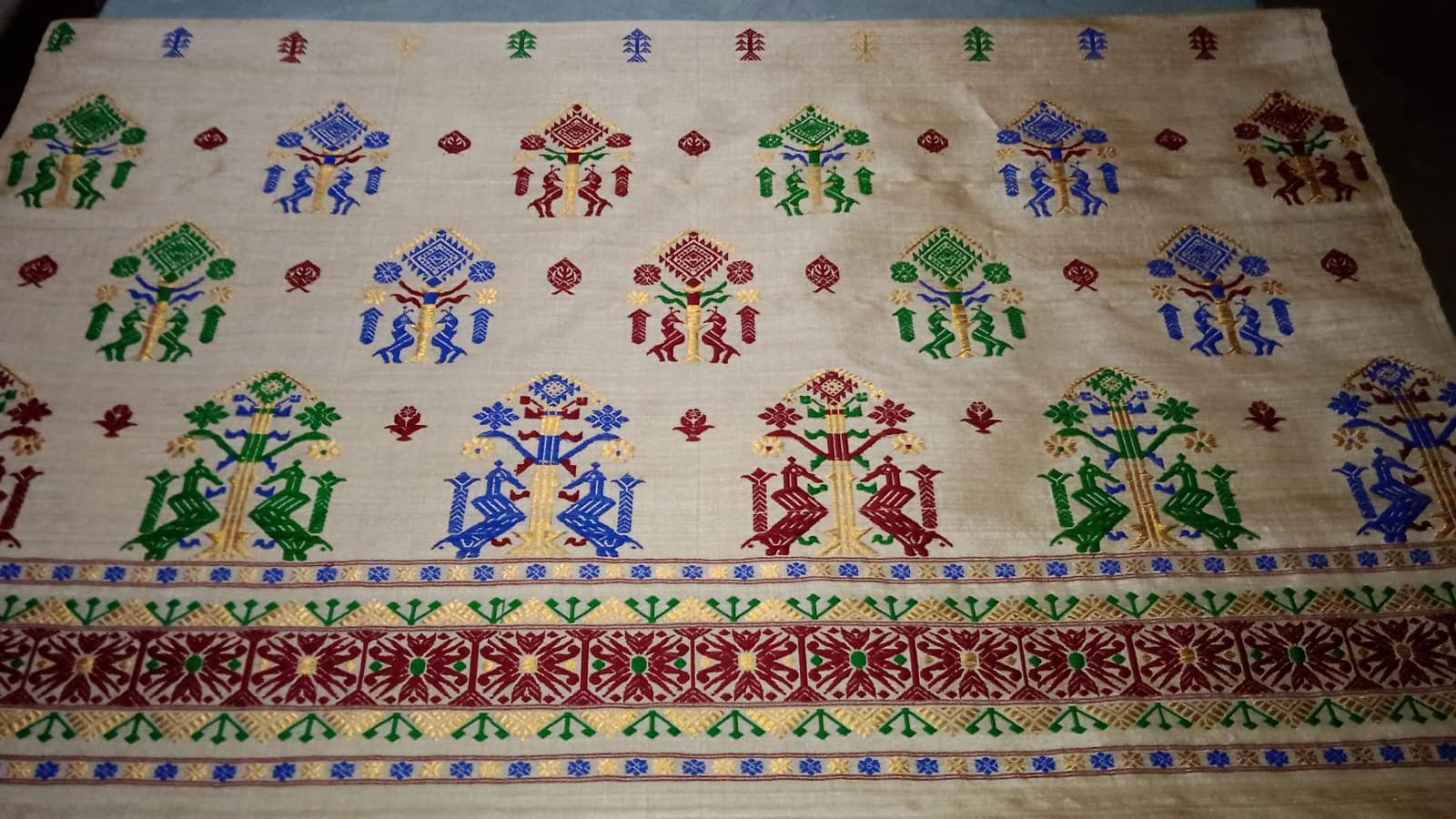 ![]() Description : Mekhela Chador (also Spelled Mekhela Chadar Or Mekhla Chador) Is A Traditional Assamese Saree Comprising Two Main Pieces Of Cloth. The Bottom Piece, Called The Mekhela, Is Draped Around The Waist Like A Skirt, While The Chador Is Draped Over The Upper Body, Similar To A Pallu In A Saree. Location : Assam, India