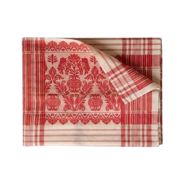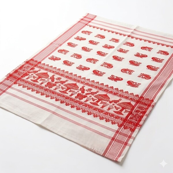 A toss gamosa (or toss muga gamosa) is a traditional Assamese scarf or towel made from the golden Muga silk, known for its durability and cultural significance, often used in special occasions and as a symbol of respect and tradition. Location : Assam, India
