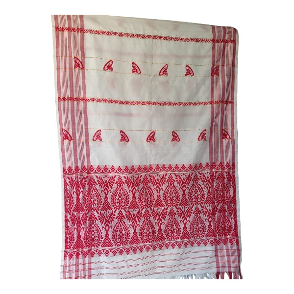 780 Piece Description : A Both Side Fulam Gamusa Refers To A Traditional Assamese Gamusa (or Gamosa) That Features Floral Or Fulam Motifs Woven On Both Sides, A Design Element That Enhances The Cultural Significance And Visual Appeal Of This Traditional Textile. Location : Assam, India