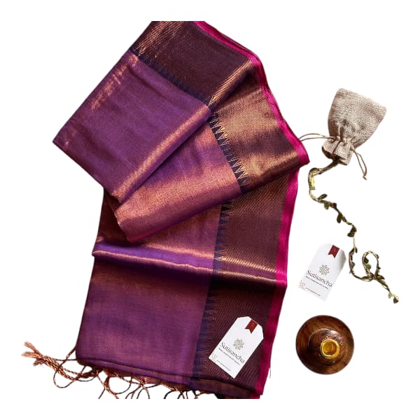 Tissue silk sarees are made with delicate and thin threads, which gives them a light and very texture. This makes them easy to drape and comfortable, even in hot and humid climates. Location : West Bengal, India