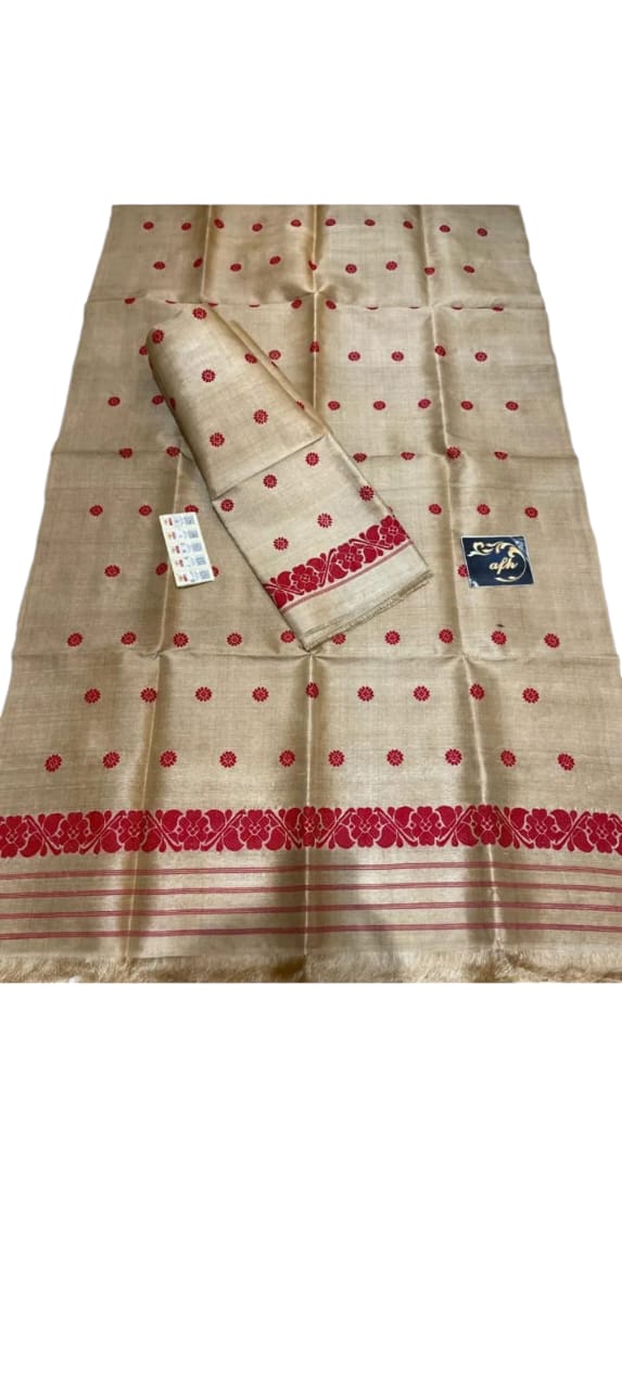 ![]() Description : Kosa Silk Sarees Are Traditional Indian Sarees Crafted From A Unique Silk Fabric Sourced From The Cocoons Of The Wild Antheraea Mylitta Silkworm. They Are Known For Their Distinctive Golden-brown Hue, Lustrous Appearance, Fine Texture, And Intricate Designs. Kosa Silk Is Also Known As Tussar Silk Or Champa Silk. Location : Chhatisgarh, India