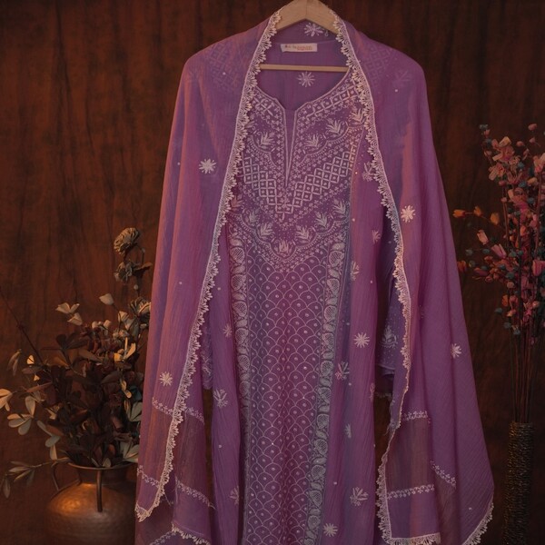1705 Set Description : A 3-piece Salwar Suit Fabric Set Includes Unstitched Or Semi-stitched Fabric For The Kameez (top), Salwar (bottom), And Dupatta (scarf). These Sets Are Available In Various Materials Like Cotton, Silk, Georgette, Or Chiffon, And Often Feature Embroidery, Prints, Or Embellishments, Allowing For Custom Tailoring And Personalized Styling. Location : Jharkhand, India