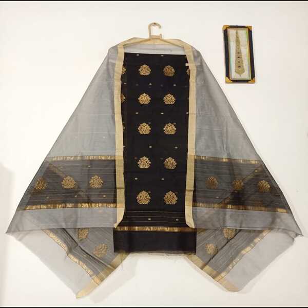 4615 Piece Description : A Chanderi Cotton Suit Is A Stylish And Comfortable Garment Made From Chanderi Fabric, Known For Its Lightweight, Breathable, And Slightly Translucent Nature. It Often Features Delicate Designs Like Geometric Shapes, Peacocks, Floral Patterns, Or Traditional Coins. The Fabrics Sheen, Achieved Through The Weaving Of Silk, Cotton, And Zari Threads, Gives It A Luxurious Feel. Location : Madhya Pradesh, India