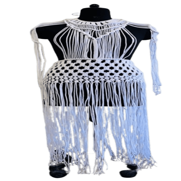 3640 Piece Description : A Macrame Cord Dress Is A Garment Crafted Using Macrame, A Fiber Art Technique That Involves Knotting Threads Or Cords To Create Patterns And Textures. These Dresses Are Often Designed To Be Versatile And Can Be Worn For Various Occasions, Including Beachwear, Festivals, And Special Events. Location : Jammu & Kashmir, India