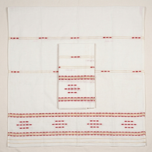 A cotton reshmi mekhela chador is a traditional Assamese dress consisting of two main pieces: the mekhela (the lower garment) and the chador (the upper garment). The mekhela is a wide cylindrical piece of fabric draped and pleated around the waist, while the chador is a longer piece of fabric draped over the shoulders and chest. The combination of cotton and silk (reshmi) in the mekhela chador offers a blend of comfort and elegance. Location : Assam, India