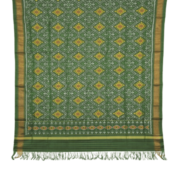 3549 Piece Description : A Patola Silk Dupatta Is A Traditional Indian Textile Crafted Using The Double Ikat Weaving Technique, Typically Made From Silk. These Dupattas Are Renowned For Their Intricate Designs And Vibrant Colors, And Are Often Seen As A Symbol Of Luxury And Heritage. Location : Gujarat, India