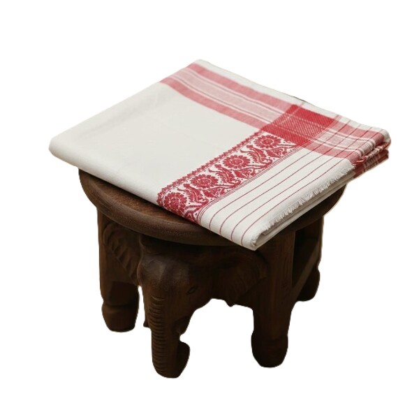 The Gamosa is a traditional Assamese handwoven cotton cloth, known for its cultural and symbolic significance. It is typically a rectangular piece of fabric, usually white, with red or maroon stripes on the borders, and sometimes features decorative motifs. The Gamosa can be used for various purposes, including wiping, head covering, or as a gift wrapper. It is a symbol of respect, hospitality, and friendship in Assamese culture. Location : Assam, India