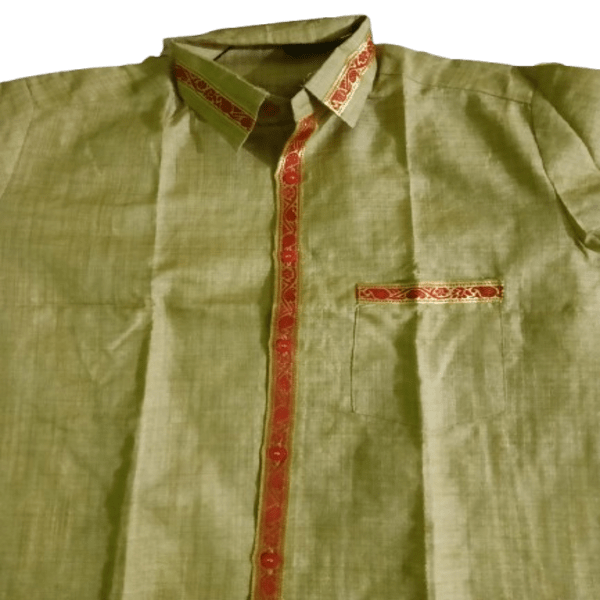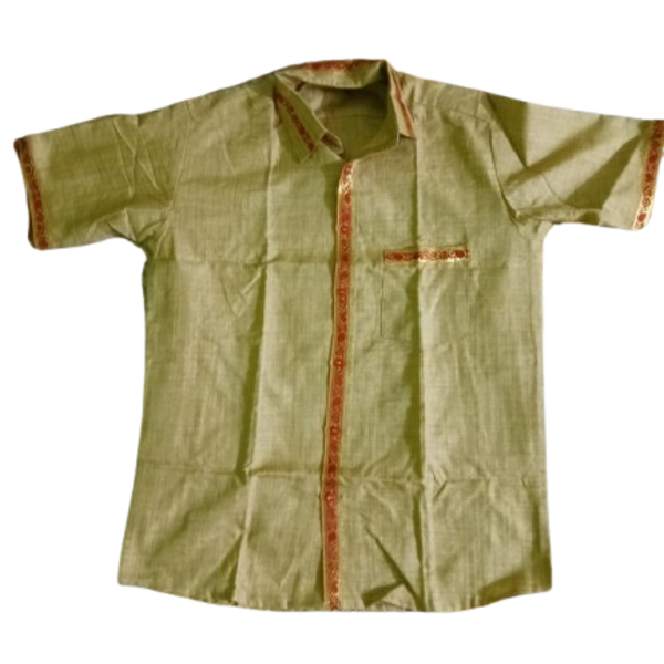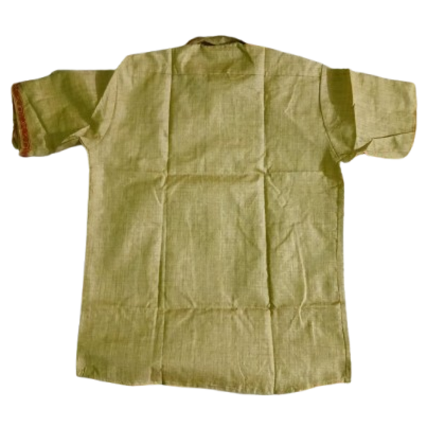 975 Piece Description : A Ghicha Shirt Is A Garment Made From Ghicha Silk, A Natural, Handwoven Fabric Derived From Tussar Silk. It Is Known For Its Smooth, Lustrous Appearance And A Slightly Uneven Texture Due To The Hand-weaving Process. Ghicha Silk Is Often Used For Its Strength And Sheen, And The Fabrics Natural Color Range From Soft Cream To Light Beige. Location : Assam, India