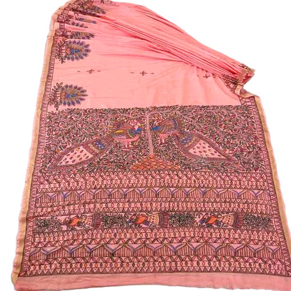 5395 Piece Description : A Tussar Ghicha Madhubani Hand Print Saree Is A Beautiful Blend Of Rustic Elegance And Traditional Art. Made From Natural Tussar And Ghicha Silk, It Features Hand-printed Madhubani Motifs Inspired By Indian Folklore And Nature. The Rich Texture Of The Fabric Combined With Intricate Artwork Gives It A Graceful Ethnic Appeal, Perfect For Festive And Cultural Occasions. Location : Jharkhand, India