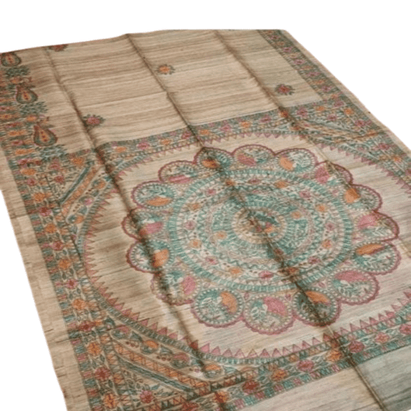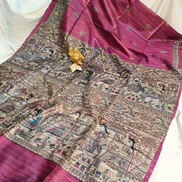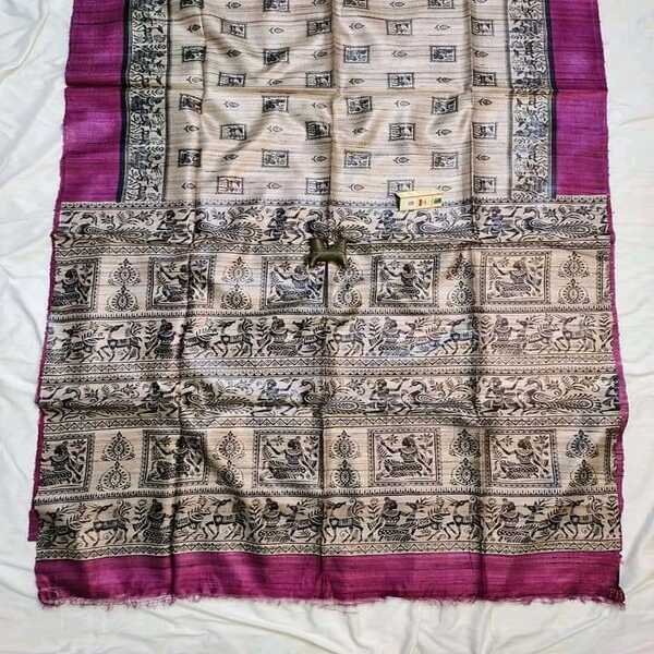 Home > Handlooms > Womens Wear > Tussar Ghicha Madhubani Handprint Saree