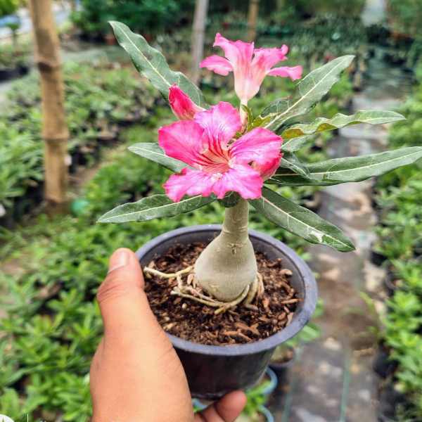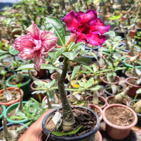 ![]() Description : Grafted Adenium, Also Known As Desert Rose, Is A Succulent Plant Where A Desired Adenium Variety (the Scion) Is Attached To A Different Adenium Rootstock. This Technique Allows For Faster Growth, Earlier And More Abundant Flowering, And The Ability To Combine The Desirable Characteristics Of Different Adenium Types. Grafted Adeniums Are Popular For Their Vibrant, Often Multi-colored Flowers And Their Ability To Thrive In Warm, Sunny Conditions With Minimal Care. Location : West Bengal, India