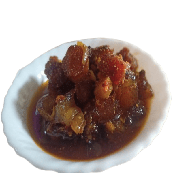 Description : Pork Pickle Is A Signature Condiment From Northeast India, Especially In Nagaland And Meghalaya. It Is Made With Tender, Often Smoked, Pork Pieces Preserved In Oil And A Blend Of Regional Spices Like Ginger, Garlic, And Chilies (including The Famously Hot King Chilli Or Bhut Jolokia). Some Versions Incorporate Fermented Soybeans (axone) Or Dried Bamboo Shoots For A Unique Flavor And Texture Profile. This Pickle Offers Bold, Spicy, Savory, And Smoky Tastes, Making It A Delicious Accompaniment To Rice, Noodles, Or Other Dishes. Location : Assam, India