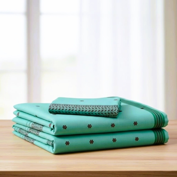 Masraj cotton likely refers to Mashru fabric, a unique Indian textile blending silk and cotton. Mashru Mekhela Chadar combines this luxurious, dual-textured fabric with the traditional Assamese attire. The outer surface boasts the sheen of silk, while the inner surface provides the comfort and breathability of cotton. This blend offers a unique combination of elegance and comfort, making Mashru Mekhela Chadar a distinctive choice. It holds cultural significance and is suitable for various occasions. Location : Assam, India