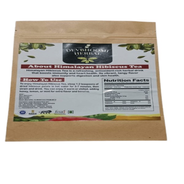 Himalayan Hibiscus tea is a vibrant, reddish-pink herbal tea made from the dried calyces of the Hibiscus flower, often blended with other ingredients like Kangra green tea, cinnamon, stevia, and licorice. It is known for its tart, tangy, and slightly sweet flavor, reminiscent of cranberries. The tea is rich in antioxidants, vitamins, and minerals, and is enjoyed both hot and cold. Location : Uttarakhand, India