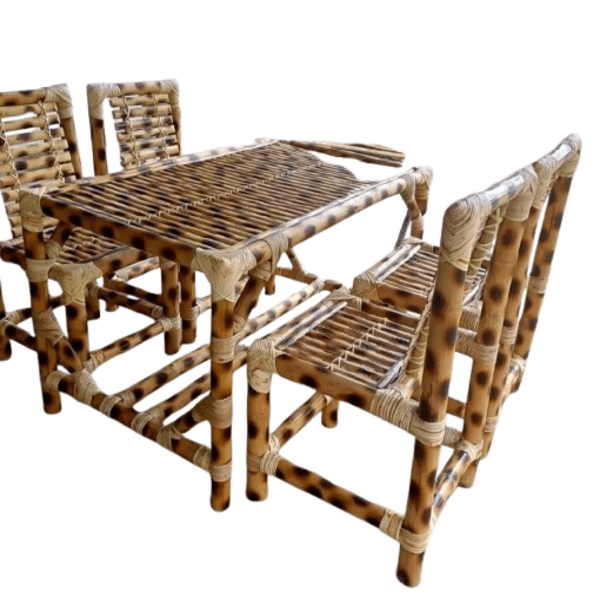 39000 Set Description : A Bamboo Dining Table Set Is An Eco-friendly, Durable, And Stylish Furniture Option Crafted From One Of The Fastest-growing Renewable Resources. It Is Known For Its High Strength-to-weight Ratio, Resilience, And Natural, Warm Aesthetic, Which Can Range From Rustic With Whole Cane Construction To Modern With Laminated Bamboo Panels. The Sets Are Lightweight For Easy Rearrangement, Often Come In A Variety Of Finishes, And May Feature A Glass Top For Added Elegance. While Naturally Resistant To Pests And Decay, Proper Maintenance—including Regular Dry Wiping, Avoiding Excessive Moisture And Direct Sunlight, And Occasional Oiling—is Needed To Preserve Its Beauty And Longevity. Its Combination Of Sustainability, Strength, And Aesthetic Appeal Makes It A Popular Choice For Creating A Naturally Inviting Dining Space. Location : Assam, India