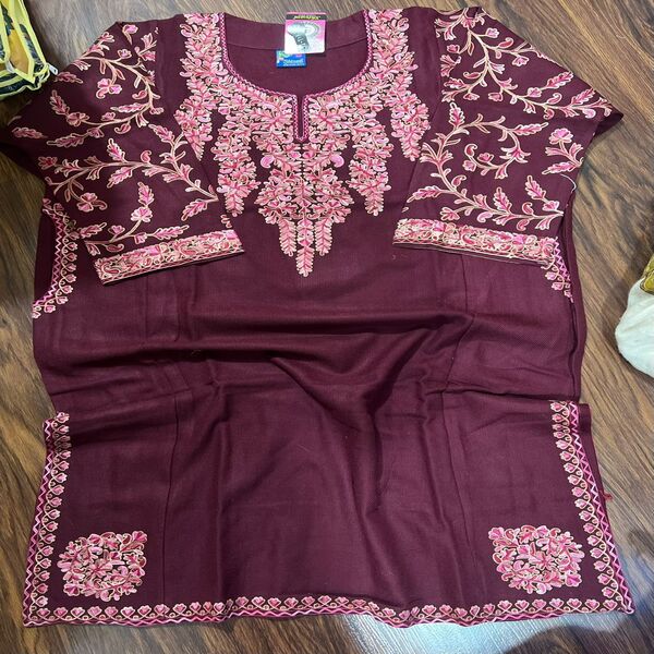 3520 Piece Description : A Woolen Pheran Is A Traditional, Loose-fitting, Knee-length Robe Worn In The Kashmir Valley For Warmth During Cold Winters. It Is Characterized By Its Wide Sleeves, Comfortable Design For Layering, And Often Features Intricate Embroidery On The Collar, Cuffs, And Hem. Made From Heavy Wool, Tweed, Or Other Warm Fabrics Like Cashmere Or Pashmina, The Woolen Pheran Is A Significant Cultural Symbol Of Kashmiri Heritage And Hospitality. Location : Jammu & Kashmir, India