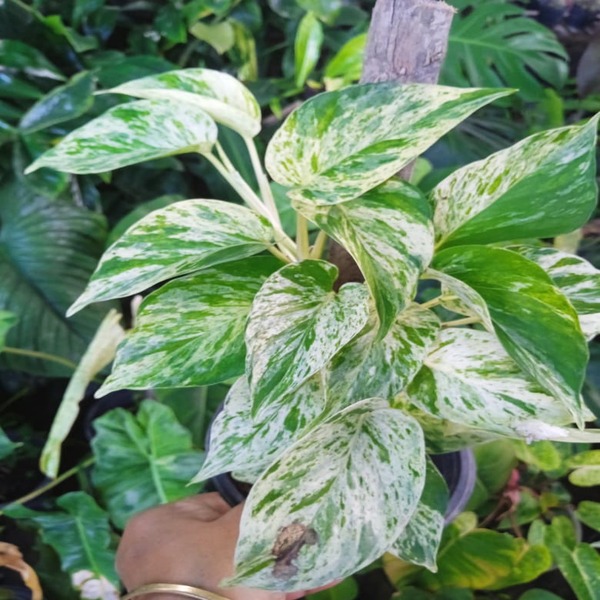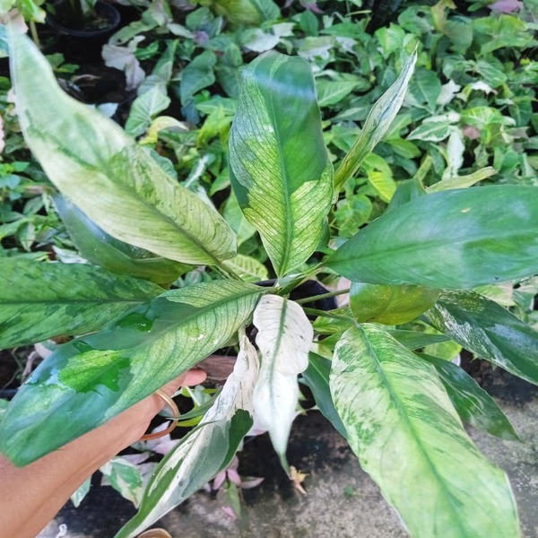 420 Piece Description : A Variegated Alocasia Is A Popular Houseplant Prized For Its Striking, Irregularly Patterned Foliage That Features Patches Of White, Cream, Or Grey Against A Deep Green Or Black Background. These Collector-favorite Plants Have Unique, Often Velvety Leaves, Typically Arrow-shaped, That Grow Upright And Are Accented By Prominent Veins. Varieties Like The Frydek And Macrorrhiza Splash Are Known For Their Dramatic Appearance And Are Ideal For Indoor Environments That Offer Bright, Indirect Light And High Humidity. Location : Assam, India
