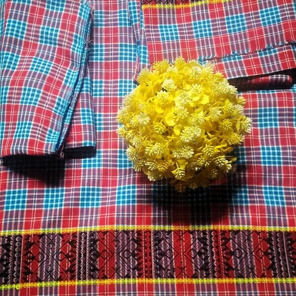 2080 Set Description : A Padmini Cotton Mekhela Chadar Is A Traditional, Handwoven Two-piece Attire From Assam, India, Made From Soft, Breathable Padmini Cotton Fabric, Featuring Unique Handloom Designs, And Consists Of A Cylindrical Skirt-like Mekhela Worn From The Waist Down And A Chadar Draped Over The Upper Body And Head. This Comfortable Garment, Which Includes A Separate Blouse Piece, Is Ideal For Daily Wear, Especially In Hot Climates. Location : Assam, India