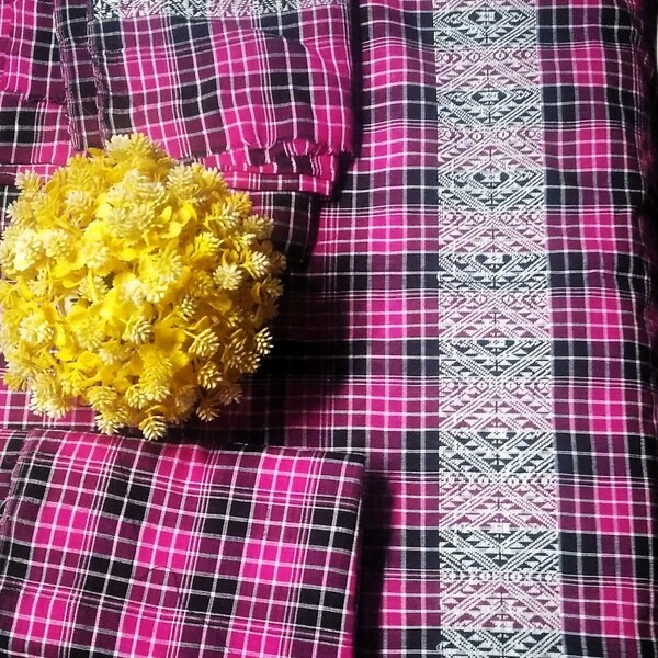 1760 Set Description : A Padmini Cotton Mekhela Chadar Is A Traditional, Handwoven Two-piece Attire From Assam, India, Made From Soft, Breathable Padmini Cotton Fabric, Featuring Unique Handloom Designs, And Consists Of A Cylindrical Skirt-like Mekhela Worn From The Waist Down And A Chadar Draped Over The Upper Body And Head. This Comfortable Garment, Which Includes A Separate Blouse Piece, Is Ideal For Daily Wear, Especially In Hot Climates. Location : Assam, India