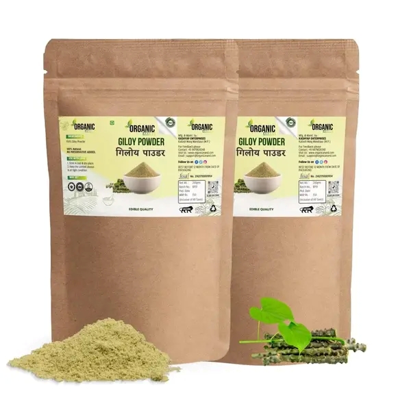 279 Packet Net Weight : 200 Gram Description : Giloy Powder Is An Ayurvedic Supplement Derived From The Dried Stem Of The Tinospora Cordifolia Plant, Known For Its Bitter Taste And Potent Medicinal Properties. As An Immunomodulator, It Is Rich In Antioxidants That Help Detoxify The Body And Strengthen The Immune System Against Infections And Fevers. It Is Also Traditionally Used To Improve Digestion, Support Liver Health, And Manage Blood Sugar Levels. The Powder Can Be Consumed By Mixing It With Warm Water, Juice, Or Milk, But It Is Important To Consult A Healthcare Professional Before Use, Especially For Individuals With Autoimmune Diseases, Diabetes, Or Those Who Are Pregnant Or Breastfeeding. Location : Madhya Pradesh, India