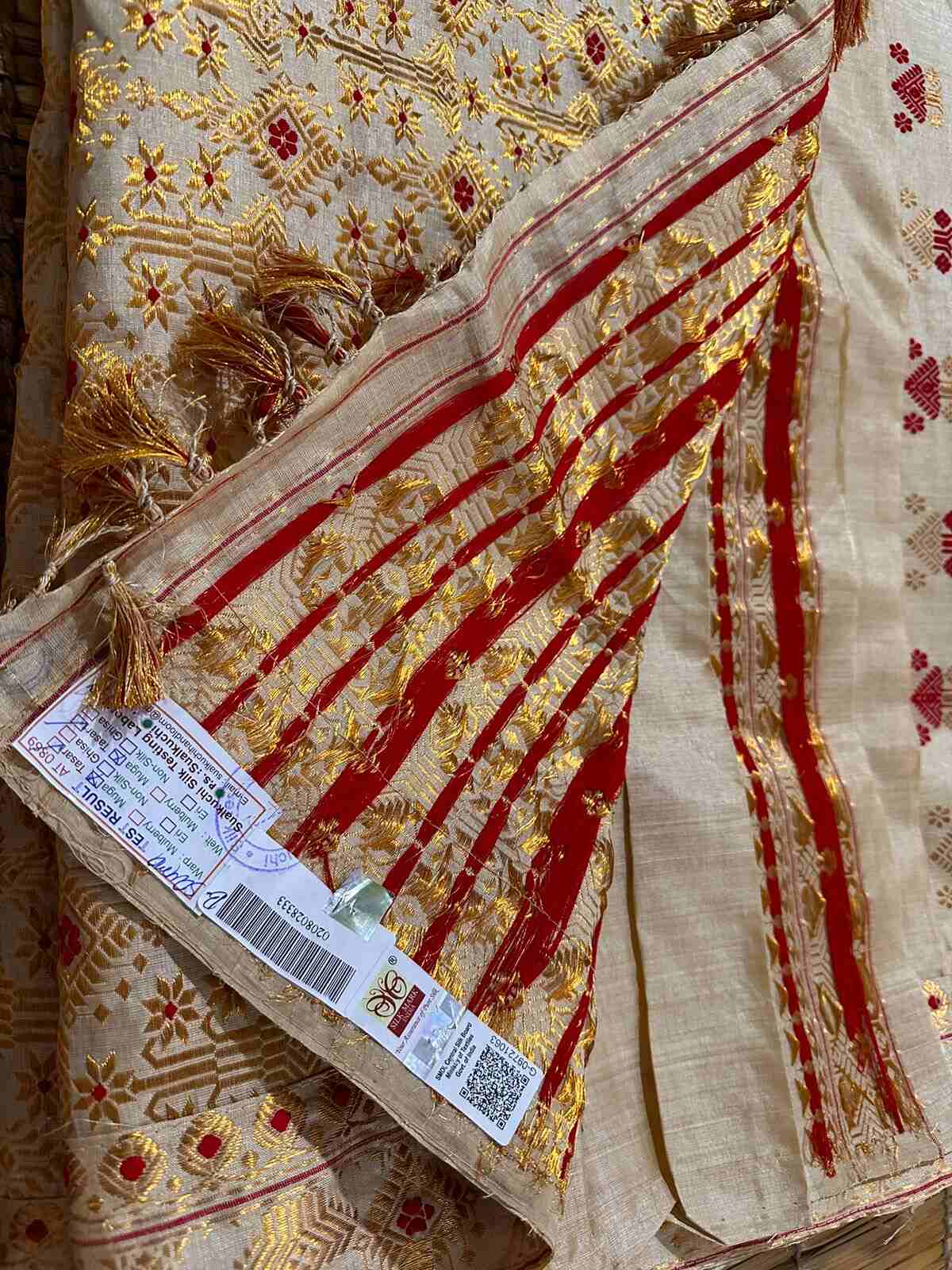 17050 Piece Description : Immerse Yourself In The Timeless Elegance Of Our Pure Toss Silk Saree, A Luxurious Piece. Woven From The Finest Silk, This Traditional Assamese Attire Showcases The Rich Cultural Heritage And Exquisite Craftsmanship That Our Shop Is Renowned For. Location : Assam, India