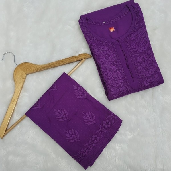 1595 Set Description : A Rayon Cotton Chikankari Kurti With Palazzo Set Is A Two-piece Outfit Featuring A Long Kurti (tunic) And A Matching Palazzo (wide-leg Pants), Both Made From Lightweight Rayon Cotton. The Kurti Is Adorned With Delicate, Hand-embroidered Chikankari Work, A Traditional Craft From Lucknow, Which Gives The Set A Blend Of Traditional And Modern Appeal. The Breathable Rayon Fabric Ensures Comfort For All-day Wear, Making It Suitable For Both Casual And Festive Occasions. Location : Uttar Pradesh, India