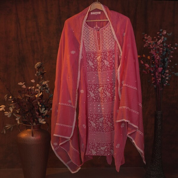 3850 Set Description : A Chikankari Co-ord Set Is A Matching Ensemble, Typically Consisting Of A Top And Bottom, That Features The Traditional, Delicate Hand-embroidery Known As Chikankari. Originating In Lucknow, India, This Ancient Art Form Is Famous For Its Intricate, Ornate Floral Motifs And Fine Needlework. The Resulting Co-ord Sets Blend Traditional Craftsmanship With Modern Silhouettes, Making Them Both Elegant And Versatile. Location : Uttar Pradesh, India
