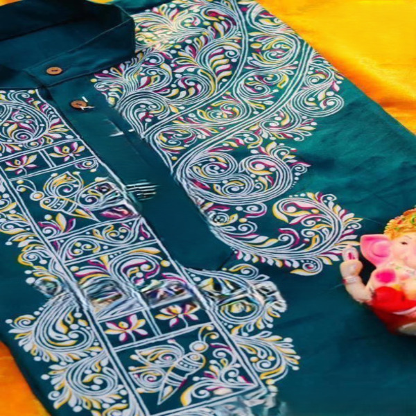 990 Piece Description : A Kalka Punjabi Kurta Is A Mens Long, Loose-fitting Tunic Made Of Fabric Like Cotton Or Khadi Cotton, Often Handcrafted With A Kalka Or Paisley-like Embroidery Or Hand-painted Design. The Kalka Refers To The Intricate Pattern, Which Are Hand-painted Or Embroidered, Making It A Decorative, Festive, Or Formal Ethnic Wear Option. Location : West Bengal, India