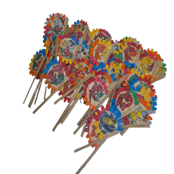 220 Piece Description : A Pattachitra Painted Hand Fan Is A Portable, Handcrafted Item, Typically Made Of A Lightweight Bamboo Or Palm Leaf Frame, Adorned With Intricate Hand-painted Designs In The Traditional Indian Pattachitra Art Style. These Fans Are Functional Tools For Cooling And Decorative Pieces Of Art, Often Featuring Vibrant, Natural Pigments Depicting Mythological Scenes, Folklore, Or Nature. Each Fan Is Unique, Handcrafted By Skilled Artisans, And Serves As A Piece Of Portable Folk Art. Location : West Bengal, India