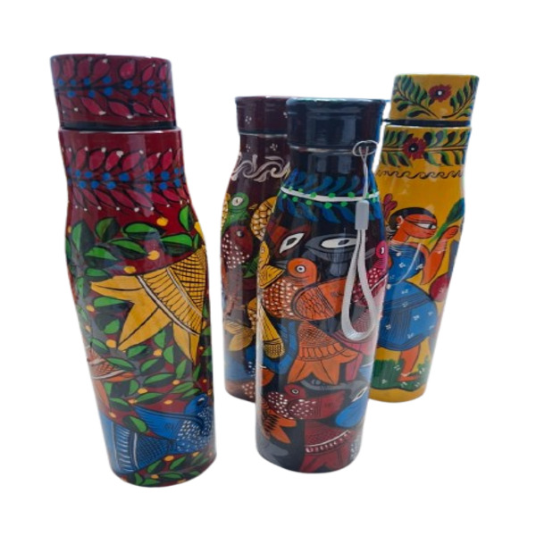 1760 Piece Description : A Pattachitra Painted Water Bottle Is A Functional Item, Like A Steel, Glass, Or Copper Bottle, Adorned With Hand-painted Designs Inspired By The Traditional Indian Art Form Of Pattachitra. These Bottles Often Feature Intricate Motifs From Mythology, Nature, Or Folklore, Created Using Natural Colours And Fine Brushwork. The Painting Turns The Bottle Into A Decorative, Eco-friendly Piece Of Art That Tells A Story And Supports Artisan Livelihoods. Location : West Bengal, India
