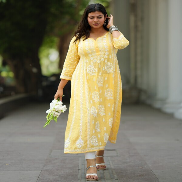 4620 Piece Description : A Chikankari Kurti Is A Traditional Indian Tunic Known For Its Delicate Hand Embroidery, Originating From Lucknow. It Features Intricate, Often Floral Or Paisley, Patterns Created With A Variety Of Stitches And Is Typically Made On Fabrics Like Cotton, Muslin, Or Georgette. The Style Is Recognized For Its Timeless Elegance, Versatility For Both Casual And Formal Wear, And A History Of Using White Thread On White Fabric, Though Coloured Threads And Coloured Fabrics Are Also Used Today. Location : Uttar Pradesh, India