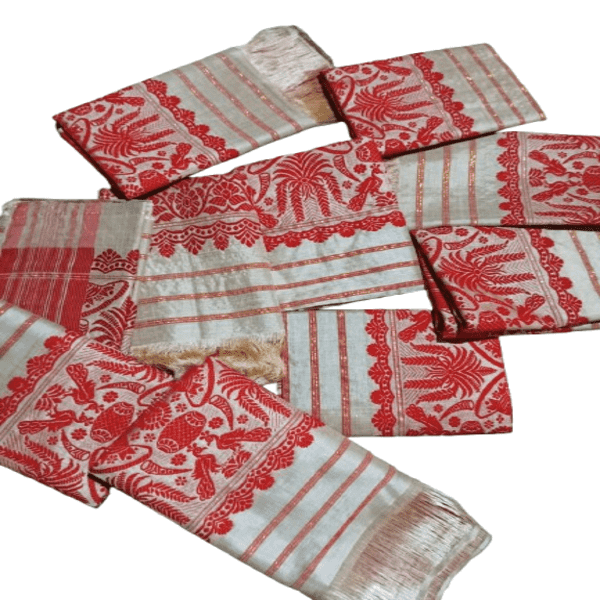 ![]() Description : A Pure Toss Gamosa Is A Handwoven Assamese Scarf Made From Luxurious, Golden Muga Silk (a Type Of Silk) Rather Than The Typical Cotton. Known For Its Intricate, Decorative Woven Patterns, Often In Red, The Pure Toss Gamosa Is An Essential Cultural Emblem In Assam, Used As A Symbol Of Deep Respect, Dignity, And Tradition, And Worn During Special Occasions And Ceremonies. Location : Assam, India